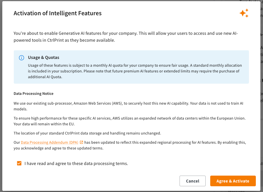 CtrlPrint Intelligence Features are included with your licence at no extra cost, up to a monthly AI usage limit.